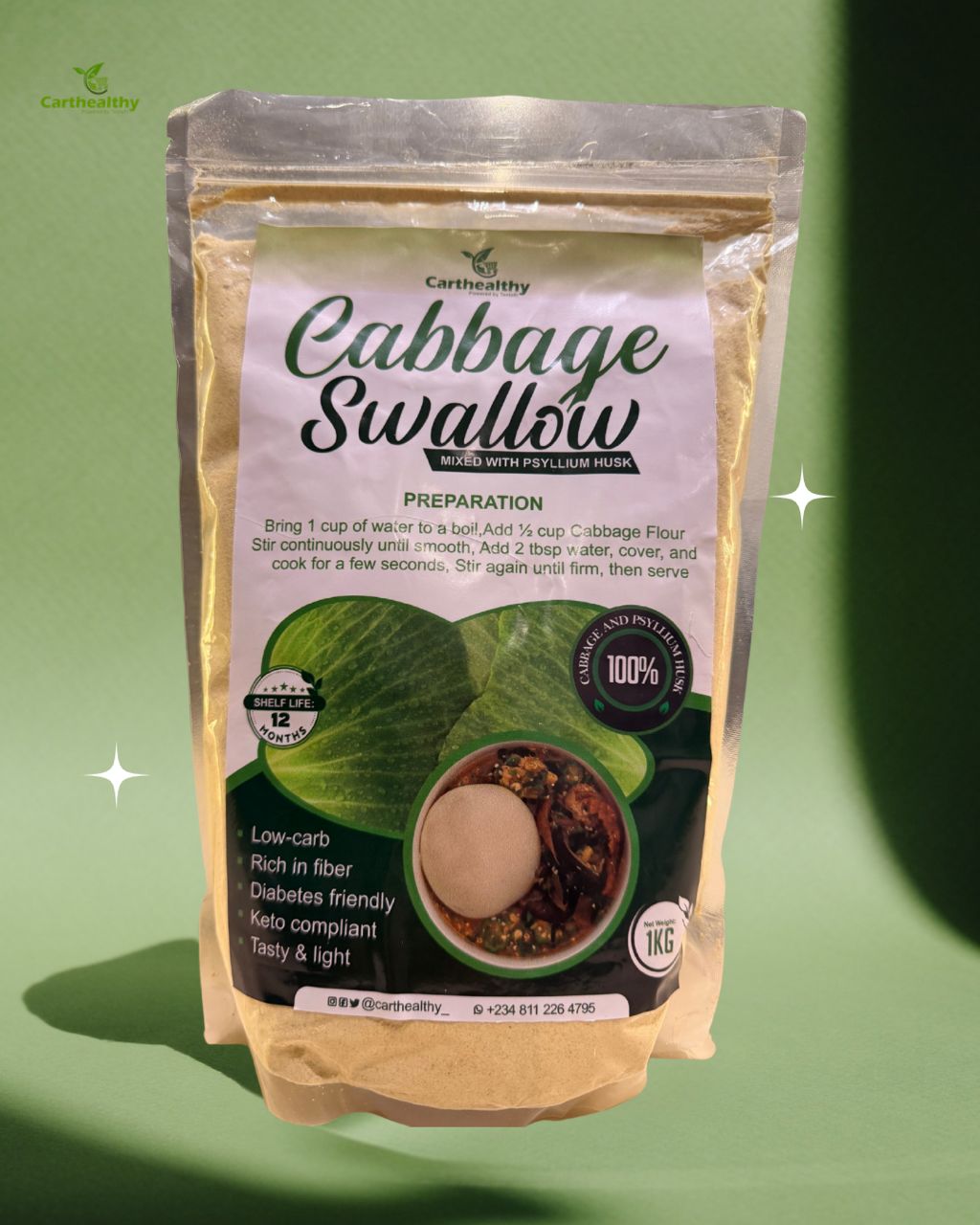 Reclaim traditional meals with CART HEALTHY’s Cabbage Swallow—a game-changing, low-carb alternative that honors your cultural heritage while supporting your health. Made from 100% cabbage blended with psyllium husk, this nutrient-dense flour is rich in fiber and completely keto-compliant.