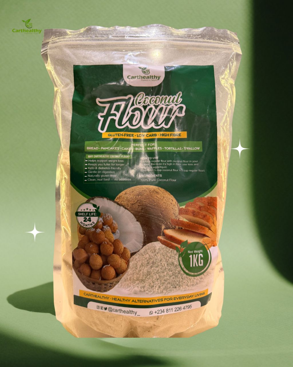 Revolutionize your healthy baking with CART HEALTHY’s premium Coconut Flour—100% pure, gluten-free, and nutrient-dense. This versatile superfood is your key to guilt-free baking that actually nourishes your body.