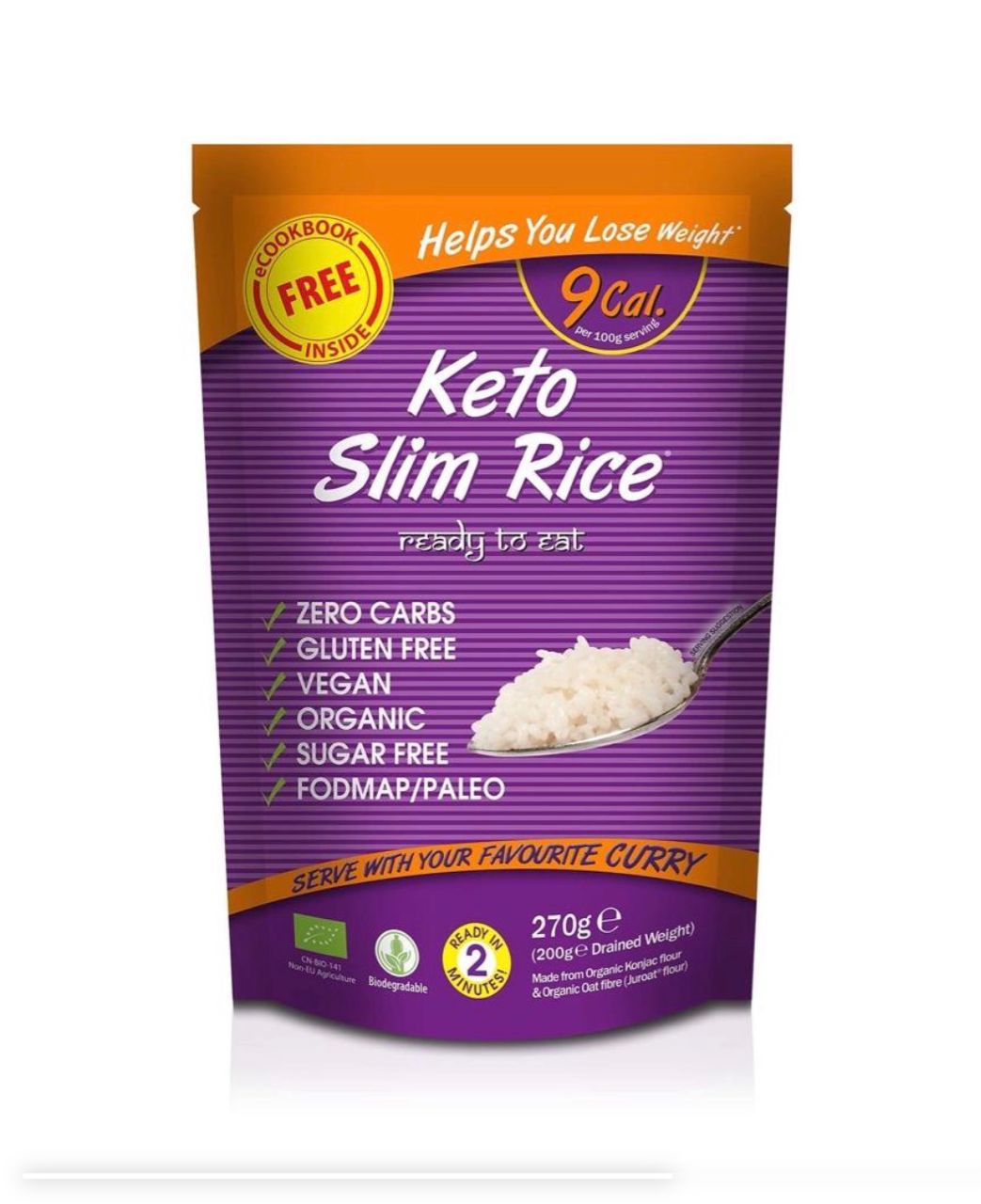 Keto Slim Rice is a smart, guilt-free alternative to traditional rice, created for keto, low-carb, and weight-conscious lifestyles. With zero carbs and only 9 calories per 100g serving, it helps support weight management without sacrificing meal satisfaction. Made from organic konjac flour and oat fiber, it is vegan, gluten-free, sugar-free, and FODMAP/Paleo friendly. Ready in just two minutes, Keto Slim Rice absorbs flavors beautifully, making it perfect for curries, stir-fries, sauces, and everyday healthy meals.
